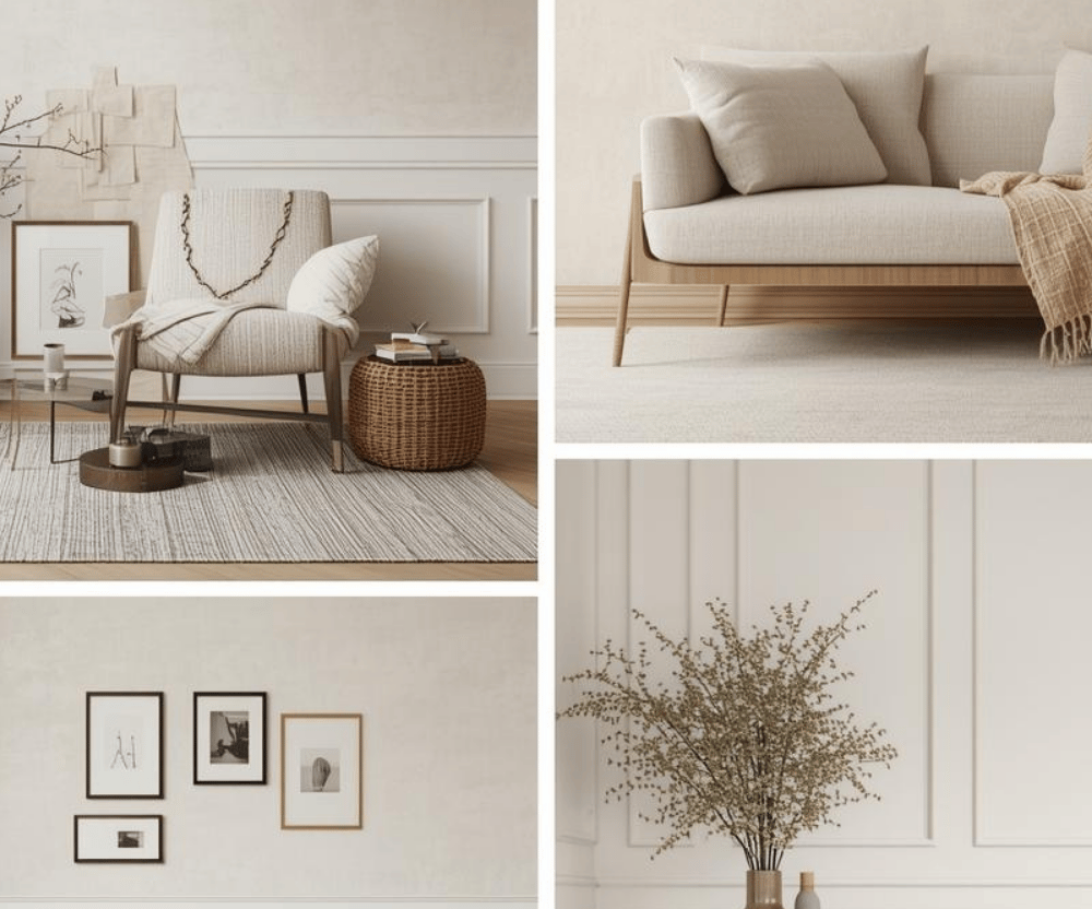 Living rooms benefit from wallpaper that creates visual interest while remaining calm and inviting. Instead of bold colors or heavy patterns, soft textures and warm neutral tones help establish a relaxed atmosphere that feels both comfortable and stylish. Subtle wallpaper designs provide depth to the space while allowing furniture, layered rugs, and wall decor to remain the focal points of the room.