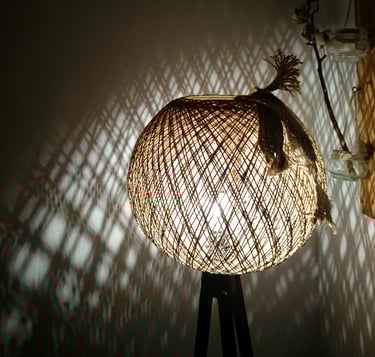 Creates a warm ambient glow while adding a natural boho statement to the space .