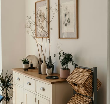 Enhances boho warmth while keeping the space calm and uncluttered.