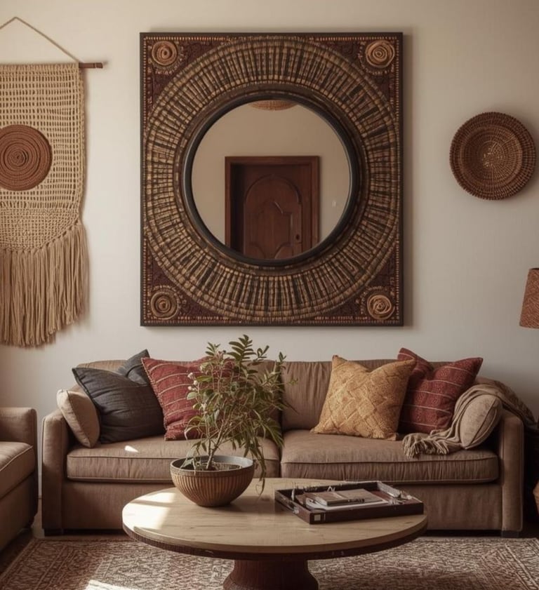 Boho living rooms feel warm and inviting when natural textures are layered thoughtfully. This page brings together curated decor finds—mirrors, rugs, wall decor, and simple accents—that work beautifully together without overwhelming the space.
